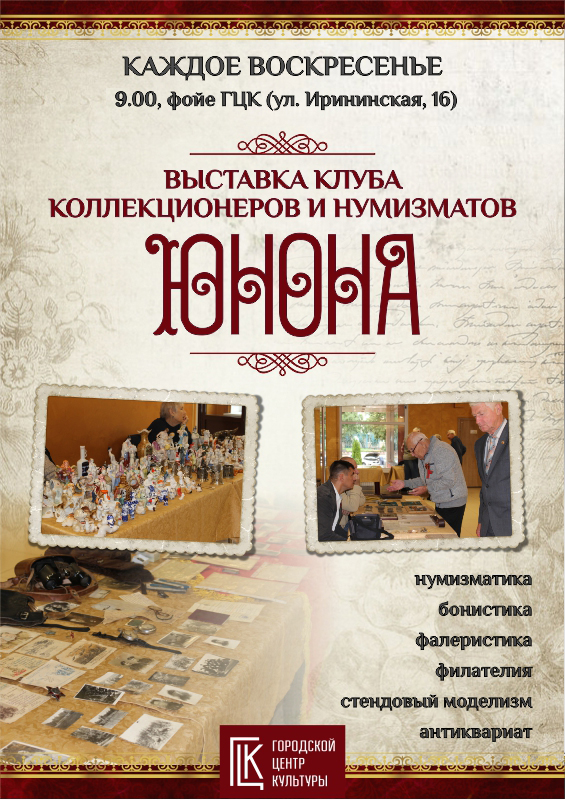 ГУ «Городской центр культуры» приглашает гомельчан и гостей города посетить Выставки Гомельского городского клуба коллекционеров «Юнона».