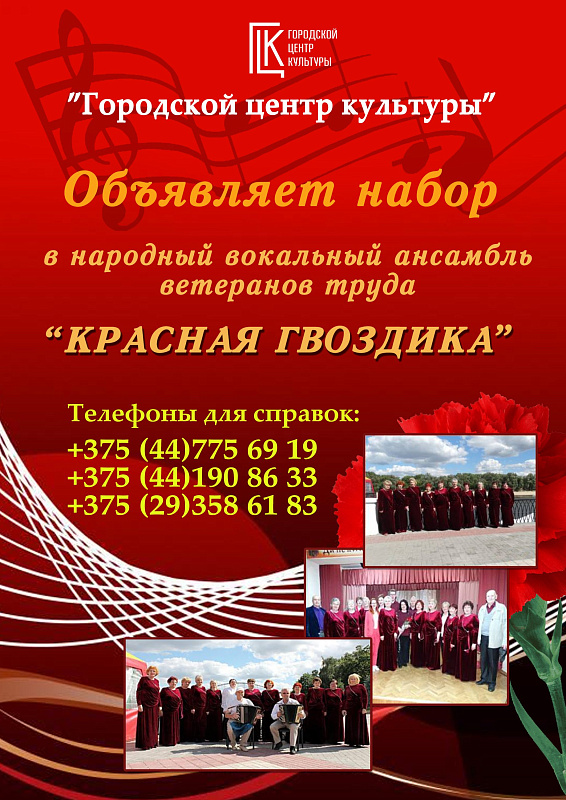 Набор в народный вокальный ансамбль ветеранов труда «Красная гвоздика»