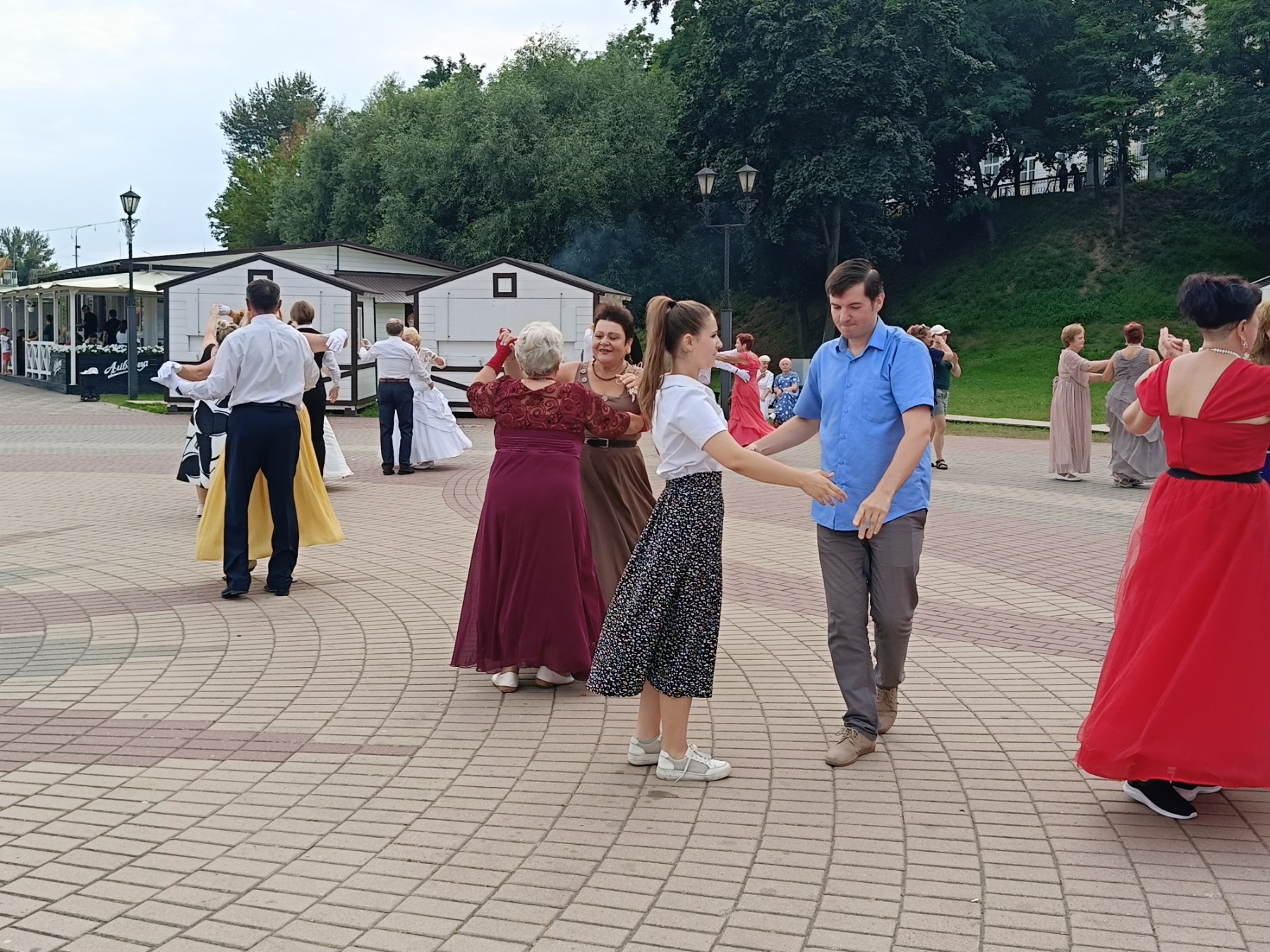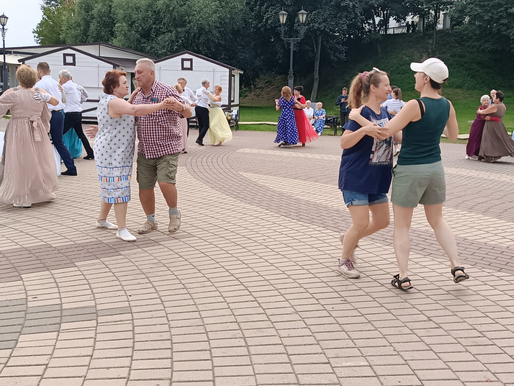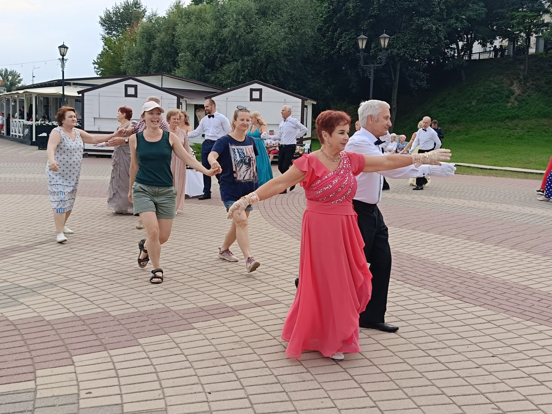 Приятный городской отдых. Лето, тепло, свежий воздух, легкая музыка, танцующие пары.. Атмосфера завораживает.. Горожане с интересом наблюдали за танцующими и включались в обучение.