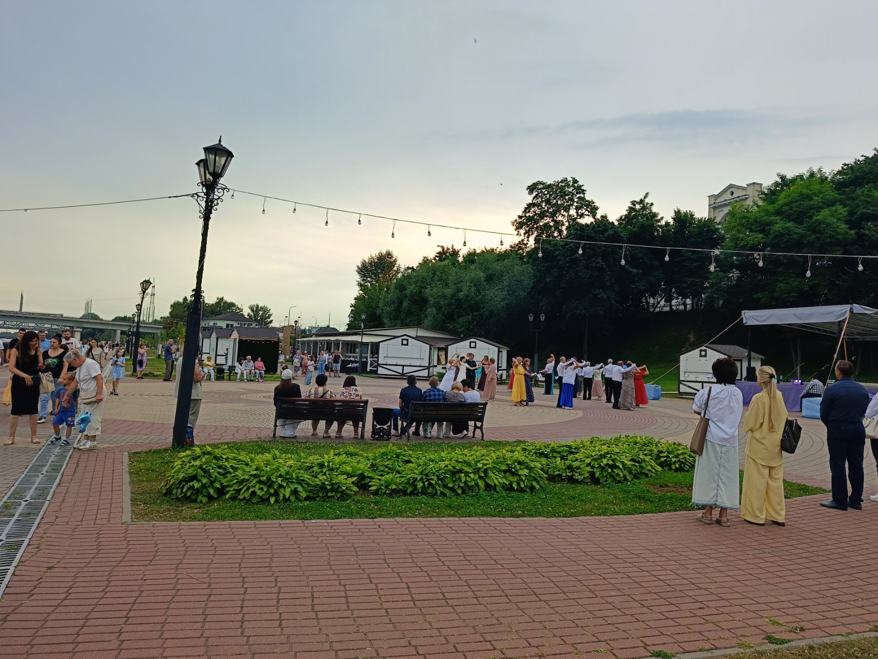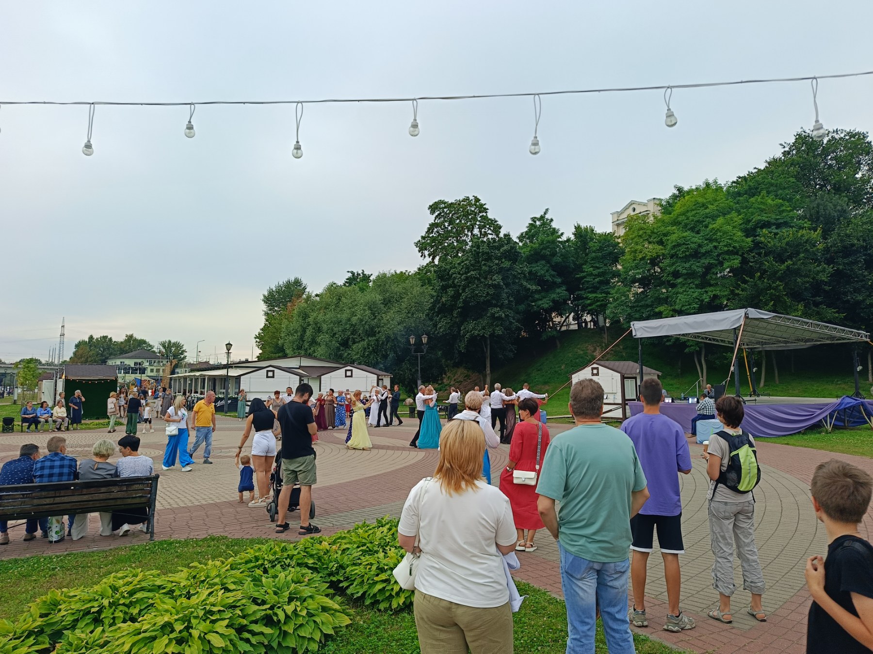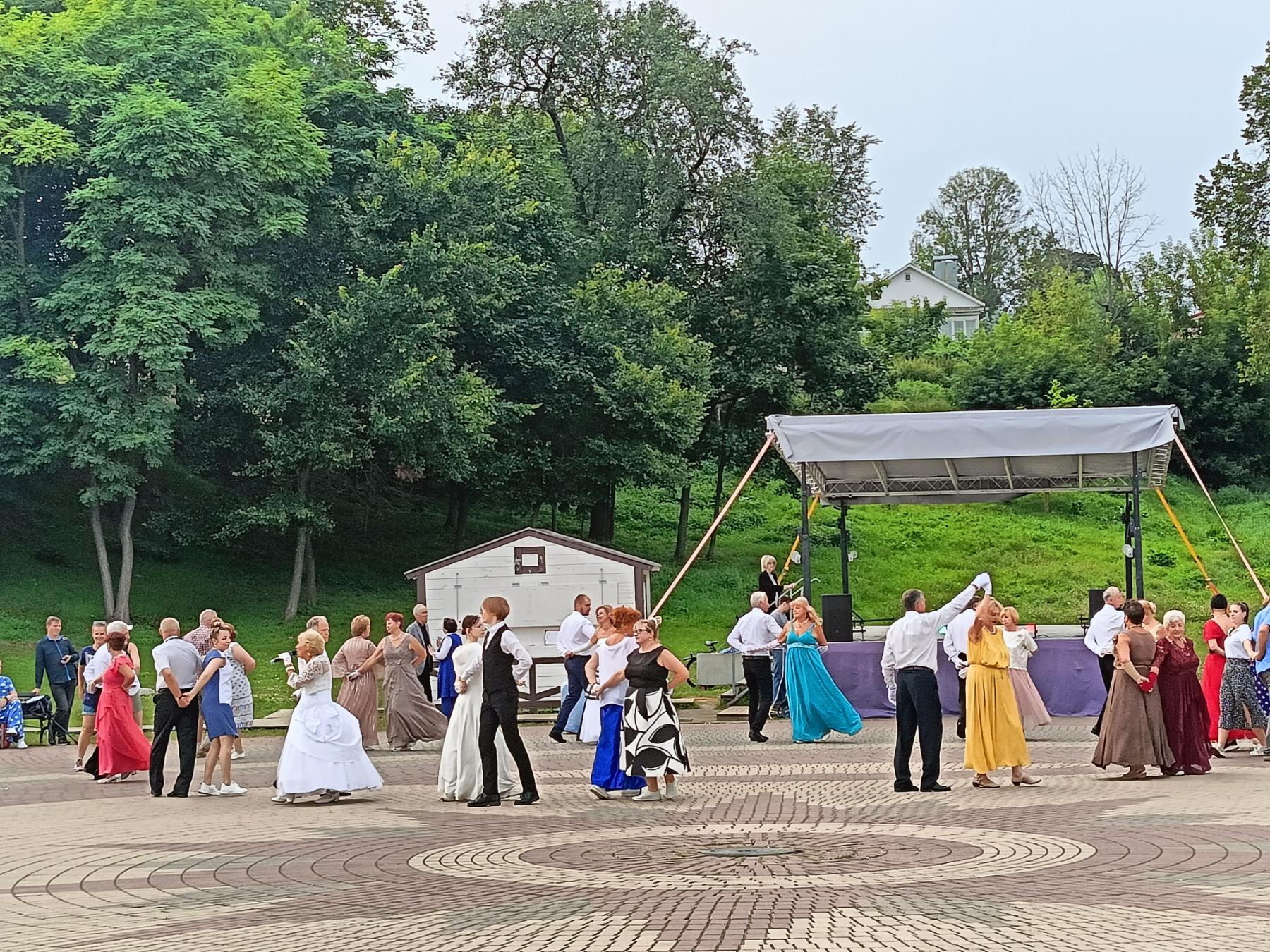 Приятный городской отдых. Лето, тепло, свежий воздух, легкая музыка, танцующие пары.. Атмосфера завораживает.. Горожане с интересом наблюдали за танцующими и включались в обучение.